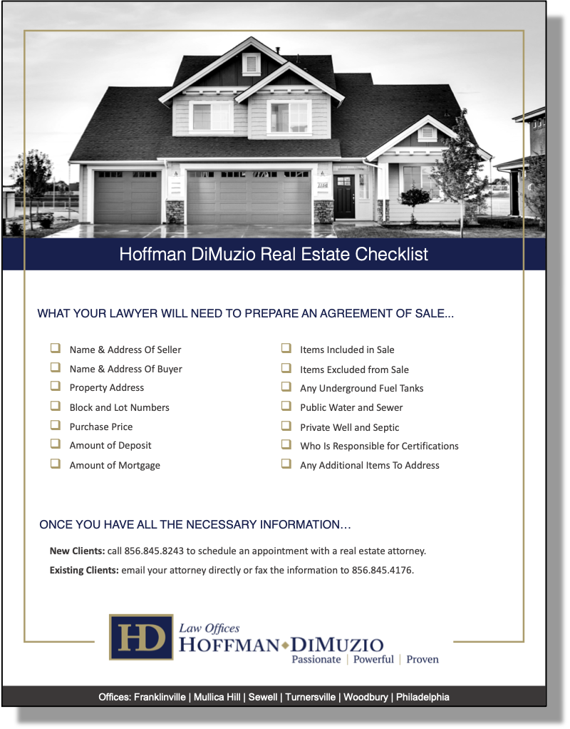 To learn more about our real estate services, schedule a consultation today with Hoffman DiMuzio by chat, contact form or by calling 856.845.8243.